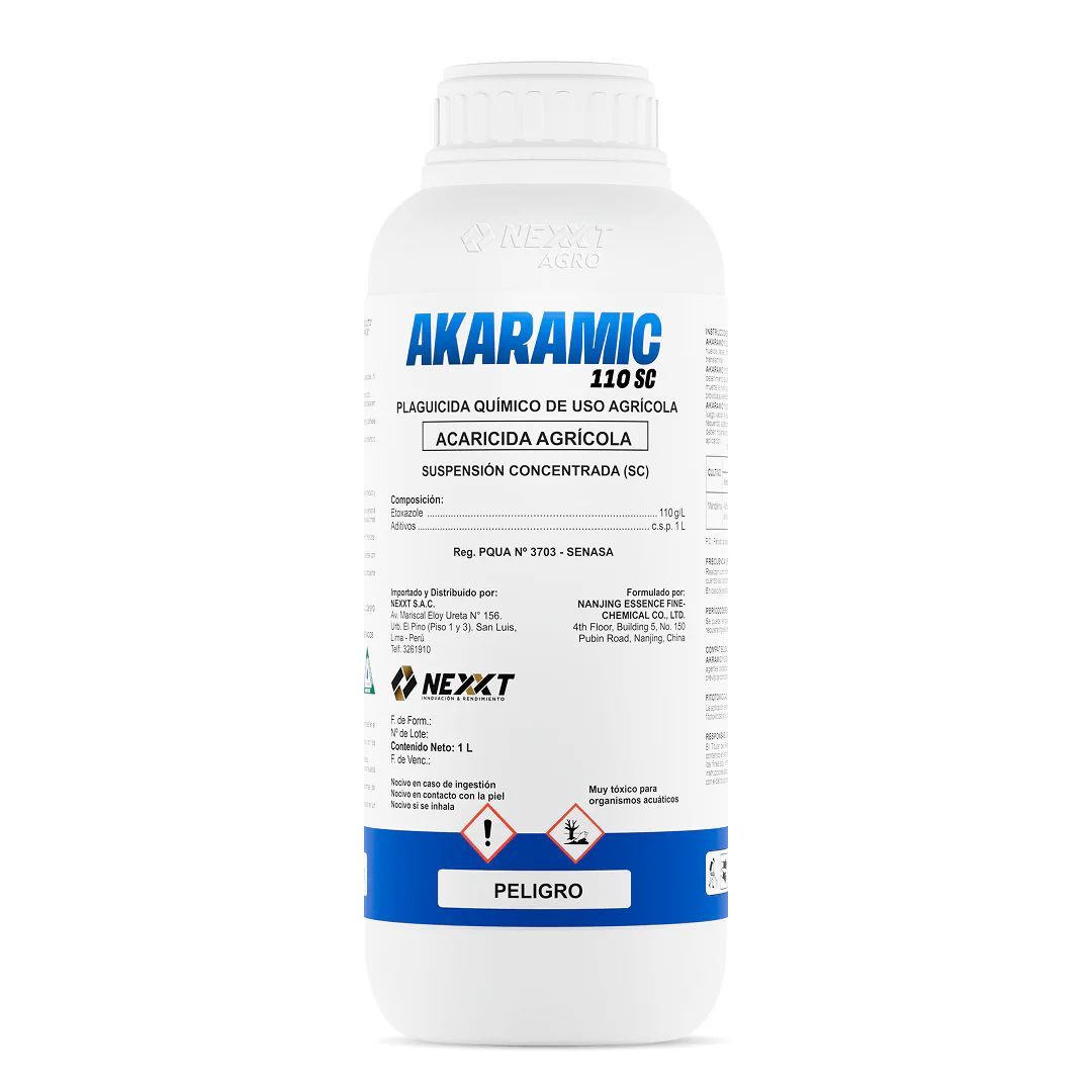 - Para aplicar Akaramic, adicionar según la dosis recomendada en el equipo de aplicación, completar el volumen de agua a utilizar y agitar nuevamente hasta lograr una mezcla homogénea.